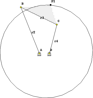 This type of Grashof linkage is obtained when the shortest link is the ground link (r1). Both the input and output links have full motion.