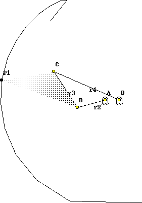 where theta2' = [ ( r1^2 + r2^2 - ( r4 - r3 )^2 ) / ( 2 * r1 * r2 ) ]
