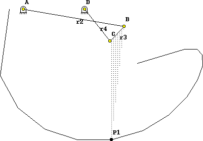 where theta4' = acos [ ( r1^2 + r4^2 - ( r2 - r3 )^2 ) / ( 2 * r1 * r4 ) ]